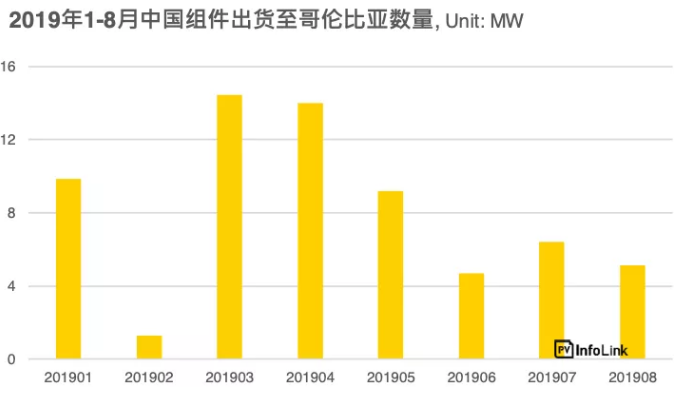 From January to August 2019, the number of Chinese components shipped to Colombia was about 65MW. The total amount is small. It is estimated that it is mainly for IPP and distributed project demand. Considering the recent completion of large-scale renewable energy project bidding in China, the component pull Demand for goods may begin to show up next year, and overall shipment performance in 2020 is expected to be stronger than this year.